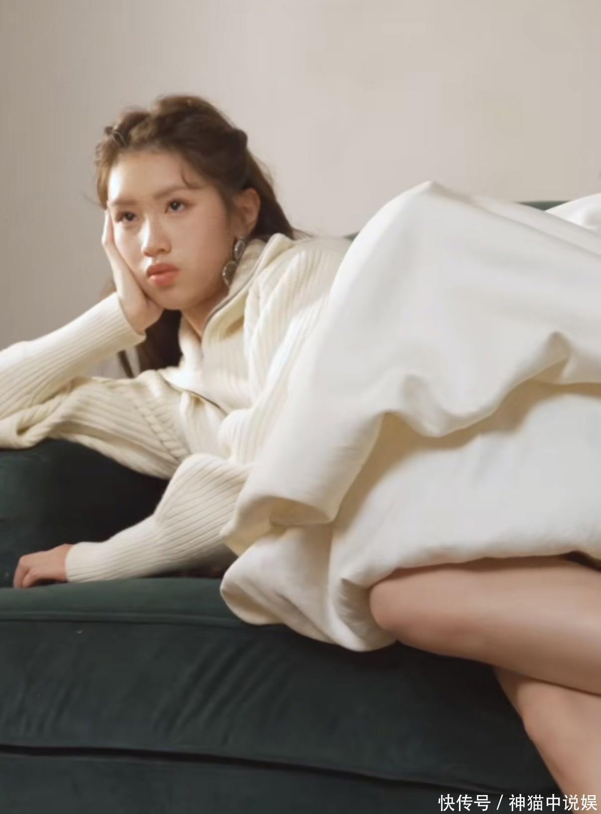 这次徐朵的打扮很少女,给人一种清纯中带点甜美的感觉。她穿着一件半高领的白色毛衣,发型则打造成公主式的半扎发,显得温婉可人,若隐若现的双腿更衬得她轻盈动人。