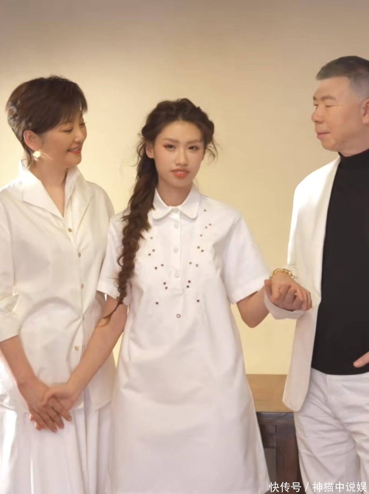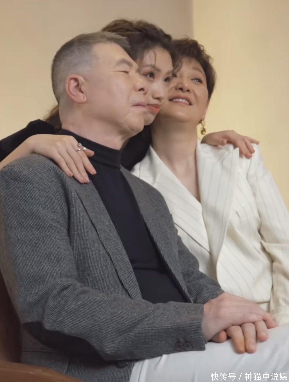 他们一家三口的画面,看着特别温馨。徐朵站在中间,两手轻轻搭在爸妈肩上,冯小刚微微闭着眼,神情满是满足和幸福。